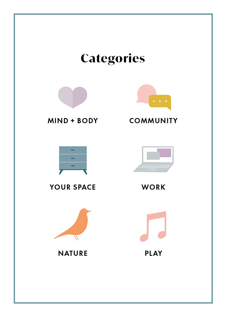 Perfect for a nightstand or desk, A Good Deck: Take Care of Yourself is full of accessible, positive suggestions for self-care-themed simple steps divided in 6 categories: MIND / BODY, YOUR SPACE, NATURE, COMMUNITY, WORK, and PLAY. One card at a time, one day at a time, readers can take these small actions to care for themselves and begin a lifelong journey of happiness and self-love.